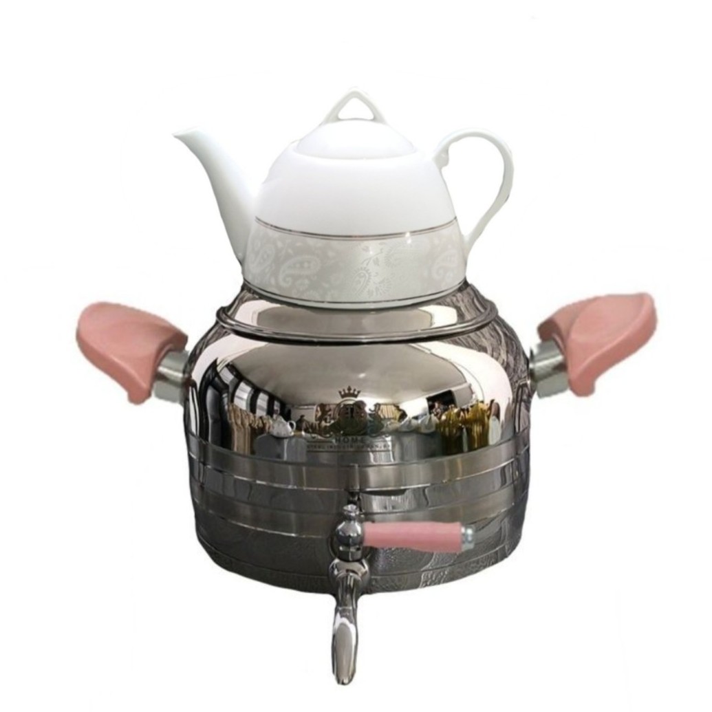 جنس بدنه کتری استیل با ضخامت 0/8mm با تکنولوژی کف چدن سه لایه که از دو لایه استیل و در بین آن یک لایه آلومینیوم ساخته شده است که این مزیت باعث صرفه جوی در مصرف انرژی می شود که در کمترین زمان ممکن آب داخل کتری را به نقطه جوش می رساند تا مدت زیادی حدود یک ساعت آب را داغ نگه می دارد مهجز به درب سوپاپ دار برای مواقعی که کتری بدون قوری استفاده می شود درب سوپاپ دار باعث زود تر داغ شدن آب کتری می شود وهنگام استفاده با قوری سوپاپ روی درب بخار آب کتری را به زیر قوری هدایت میکند و در حالت دم آوری قوری قرار می گیرد همچنین دسته کتری از نوع باکالیت نسوز و در رنگ های سفید .صورتی .طلایی .نقره ای. و مشکی قابل عرضه می باشد