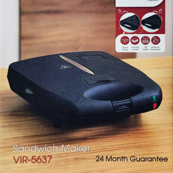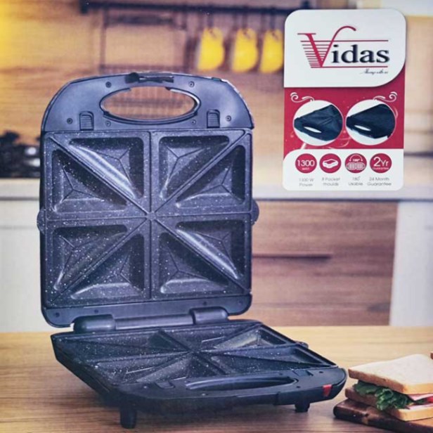 ساندویچساز «ویداس» (Vidas) مدل VIR-5637، جدید ترین ساندویچ ساز این شرکت ، مناسب جهت ساخت و تست انواع اسنک و فوق العاده پر قدرت جهت گریل انواع برگر،گوشت ، مرغ و ... می باشد . این ساندویچساز چهارخانه و با توان مصرفی 1300 وات تولید شده است.ساندویچ سازVIR-5637 مجهزبه دو صفحه مستحکم ساندویچ ساز و دو صفحه گریل قابل تعویض که با جدید ترین روکش نچسب «گرانیت» پوشیده شده است و دارای دستگیره محافظتی در برابر حرارت می باشد.گفتنی است شرکت ویداس برندی ایرانی در زمینهی تولید و عرضهی لوازمخانگی است