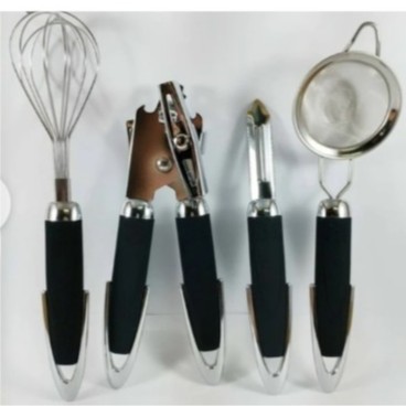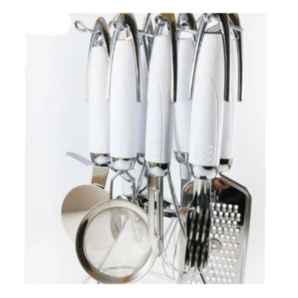 سرویس ابزار 8 پارچه آشپزخانه نمونه کاملی از ابزارالات آشپزخانه میباشد که شامل پوست گیر, کاردتیزکن, درب بازکن, پیتزابر, صافی, همزن,رنده می باشد تنوع و تعدد این سرویس بی نظیر آشپزی را برای شما آسان و دلپذیر تر می نماید، جنس این محصول از استیل می باشد که همراه با استند آویز فلزی می باشد. که شما میتوانید یک آشپزی آسوده خاطر را با این محصول تجربه نمایید.