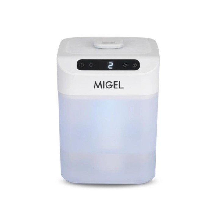 بخور سرد های میگل با داشتن مخزن بزرگ ، تولید 7 نور مختلف برای شب و بخاردهی طولانی مدت ، رطوبت ساز و بخور سرد میگل GAH 550 می باشد.توان مصرفی در نظر گرفته شده برای این رطوبت ساز 22 وات می باشد. تکنولوژی به کار گرفته شده از نوع اولتراسونیک بوده که موجب افزایش بازدهی با مصرف پایین انرژی می باشد.رطوبت ساز 550 میگل دارای بخاردهی 300 میلی لیتر در ساعت می باشد. با کنترل پنل دیجیتالی در نظر گرفته شده می توانید میزان خورجی بخار را نیز نظیم نمایید. برای جهت دهی به خروجی بخار این قابلیت را نیز خواهید داشت.از دیگر قابلیت های این کنترل پنل می توان به داشتن تایمر آن اشاره کنیم. این تایمر 12 ساعته می تواند با تنظیم به صورت خودکار دستگاه را خاموش نماید.ظرفیت مخزن آب دستگاه دارای گنجایش 5.5 لیتر بوده که با توجه به میزان بخاردهی ، می تواند از 12 تا 14 ساعت تولید بخار داشته باشد.همچنین این بخور سرد میگل دارای چراغ 7 رنگ مخصوص شب ، سیستم ایمنی در صورت اتمام آب درون مخزن ، دارای عملکرد یون ساز به همراه قابلیت خوشبو کننده هوا می باشد.