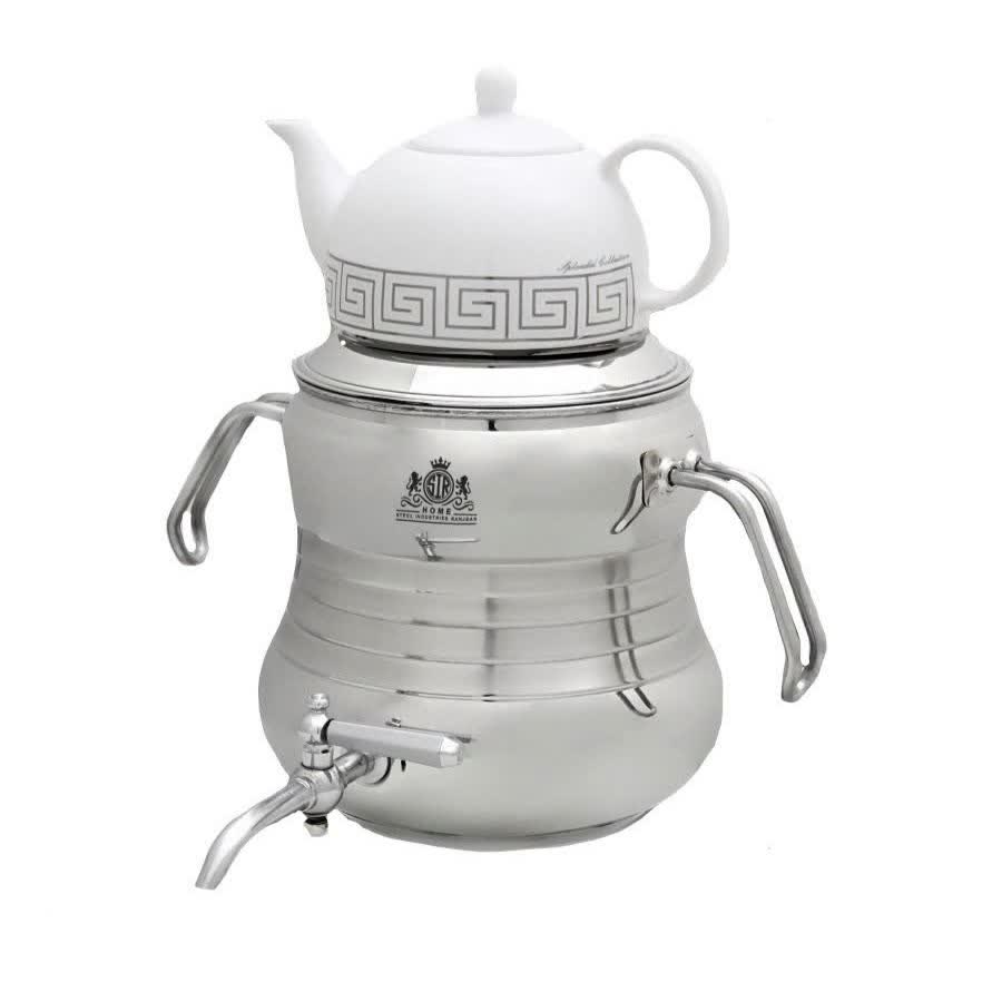 جنس بدنه کتری استیل با ضخامت 0/8mm با تکنولوژی کف چدن سه لایه که از دو لایه استیل و در بین آن یک لایه آلومینیوم ساخته شده است که این مزیت باعث صرفه جوی در مصرف انرژی می شود که در کمترین زمان ممکن آب داخل کتری را به نقطه جوش می رساند تا مدت زیادی حدود یک ساعت آب را داغ نگه می دارد مهجز به درب سوپاپ دار برای مواقعی که کتری بدون قوری استفاده می شود درب سوپاپ دار باعث زود تر داغ شدن آب کتری می شود وهنگام استفاده با قوری سوپاپ روی درب بخار آب کتری را به زیر قوری هدایت میکند و در حالت دم آوری قوری قرار می گیرد همچنین دسته کتری از جنس استیل 304 ضد زنگ ساخت ترکیه می باشد که روی کتری نصب شده است جنس قوری چینی که به روش PVD رنگ کوره ای شده است که سبب مقاومت بیشتر رنگ در برابر حرارت شده است.