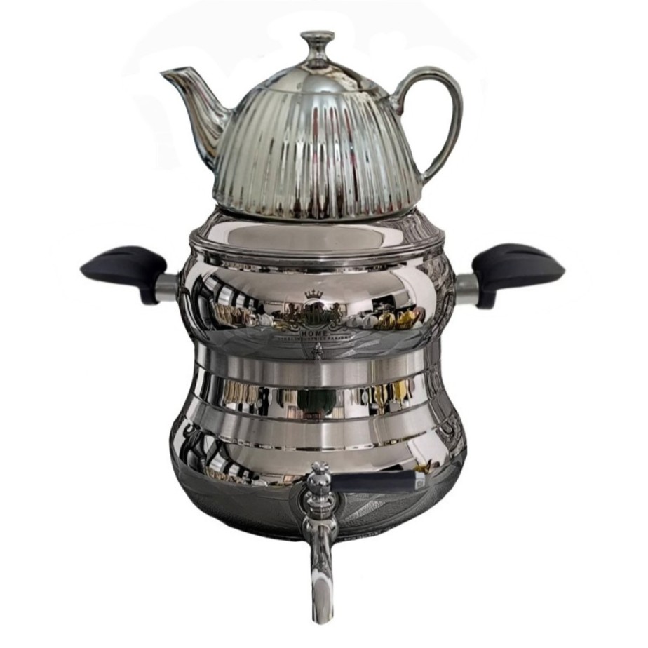 جنس بدنه کتری استیل با ضخامت 0/8mm با تکنولوژی کف چدن سه لایه که از دو لایه استیل و در بین آن یک لایه آلومینیوم ساخته شده است که این مزیت باعث صرفه جوی در مصرف انرژی می شود که در کمترین زمان ممکن آب داخل کتری را به نقطه جوش می رساند تا مدت زیادی حدود یک ساعت آب را داغ نگه می دارد مهجز به درب سوپاپ دار برای مواقعی که کتری بدون قوری استفاده می شود درب سوپاپ دار باعث زود تر داغ شدن آب کتری می شود وهنگام استفاده با قوری سوپاپ روی درب بخار آب کتری را به زیر قوری هدایت میکند و در حالت دم آوری قوری قرار می گیرد همچنین دسته کتری از جنس استیل 304 ضد زنگ ساخت ترکیه می باشد که روی کتری نصب شده است جنس قوری چینی که به روش PVD رنگ کوره ای شده است که سبب مقاومت بیشتر رنگ در برابر حرارت شده است.