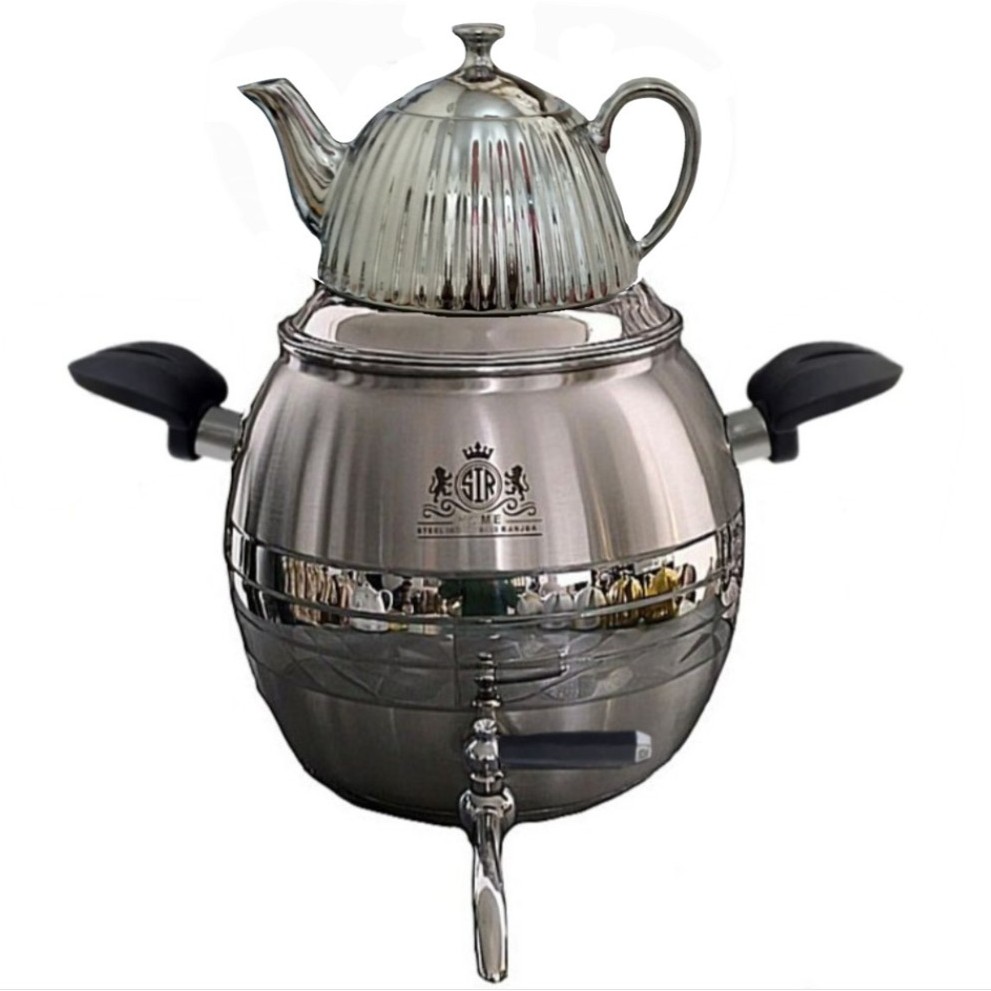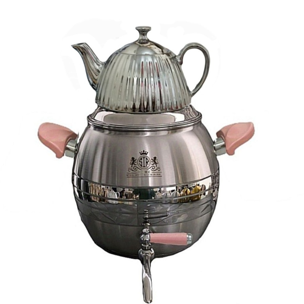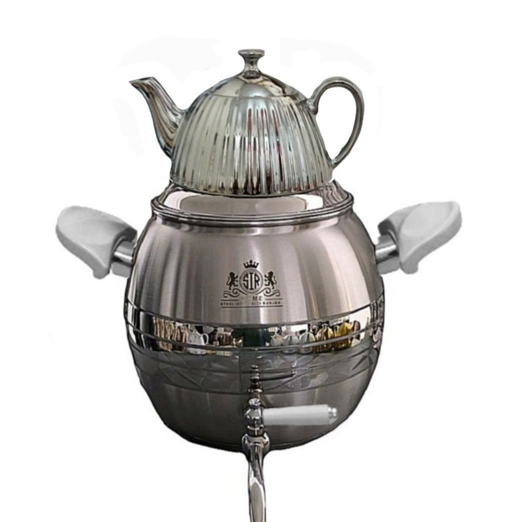 جنس بدنه کتری استیل با ضخامت 0/8mm با تکنولوژی کف چدن سه لایه که از دو لایه استیل و در بین آن یک لایه آلومینیوم ساخته شده است که این مزیت باعث صرفه جوی در مصرف انرژی می شود که در کمترین زمان ممکن آب داخل کتری را به نقطه جوش می رساند تا مدت زیادی حدود یک ساعت آب را داغ نگه می دارد مهجز به درب سوپاپ دار برای مواقعی که کتری بدون قوری استفاده می شود درب سوپاپ دار باعث زود تر داغ شدن آب کتری می شود وهنگام استفاده با قوری سوپاپ روی درب بخار آب کتری را به زیر قوری هدایت میکند و در حالت دم آوری قوری قرار می گیرد .جنس قوری چینی که به روش PVD رنگ کوره ای شده است که سبب مقاومت بیشتر رنگ در برابر حرارت شده است .همچنین دسته کتری از نوع باکالیت نسوز و در رنگ های سفید .صورتی .طلایی .نقره ای. و مشکی قابل عرضه می باشد.