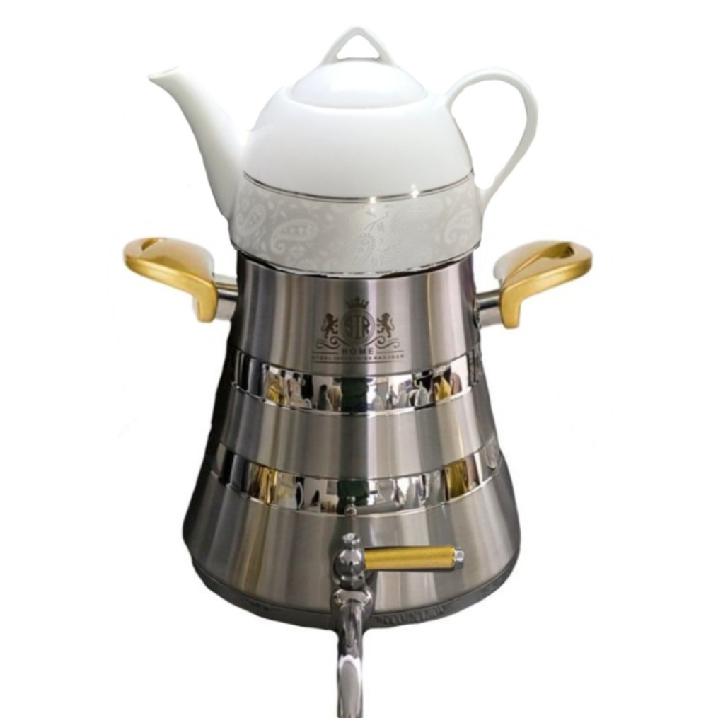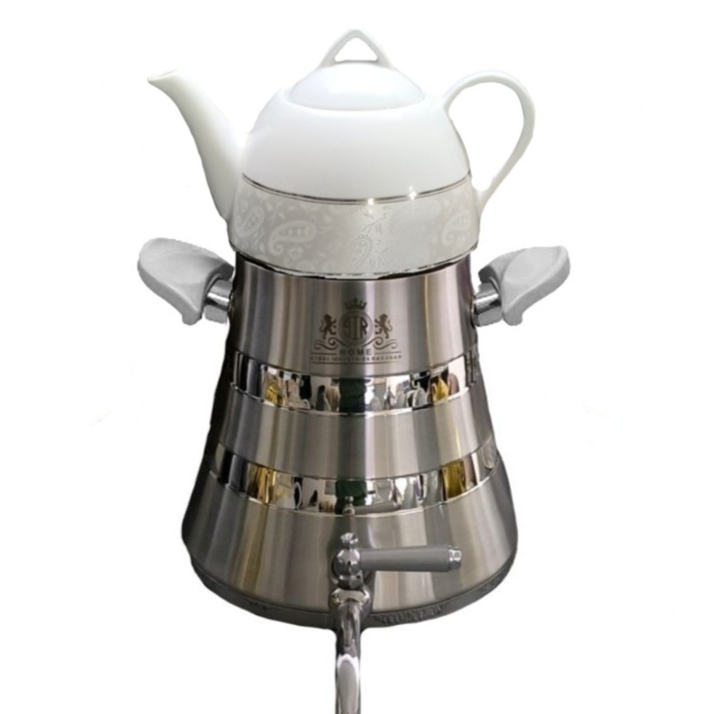 جنس بدنه کتری استیل با ضخامت 0/8mm با تکنولوژی کف چدن سه لایه که از دو لایه استیل و در بین آن یک لایه آلومینیوم ساخته شده است که این مزیت باعث صرفه جوی در مصرف انرژی می شود که در کمترین زمان ممکن آب داخل کتری را به نقطه جوش می رساند تا مدت زیادی حدود یک ساعت آب را داغ نگه می دارد مهجز به درب سوپاپ دار برای مواقعی که کتری بدون قوری استفاده می شود درب سوپاپ دار باعث زود تر داغ شدن آب کتری می شود وهمنگام استفاده با قوری سوپاپ روی درب بخار آب کتری را به زیر قوری هدایت میکند و در حالت دم آوری قوری قرار می گیرد .جنس قوری چینی که به روش PVD رنگ کوره ای شده است که سبب مقاومت بیشتر رنگ در برابر حرارت شده است .همچنین دسته کتری از نوع باکالیت نسوز و در رنگ های سفید .صورتی .طلایی .نقره ای. و مشکی قابل عرضه می باشد.