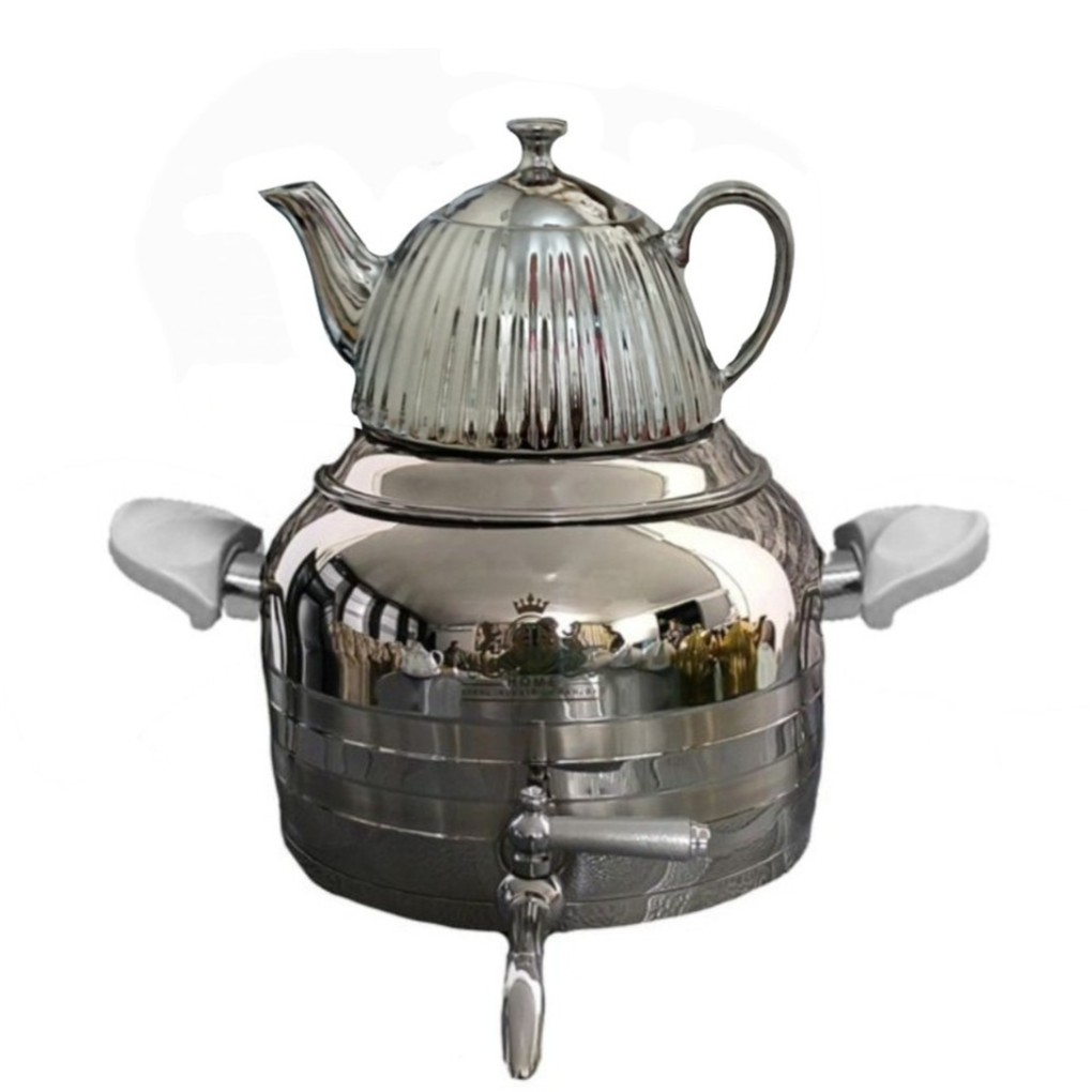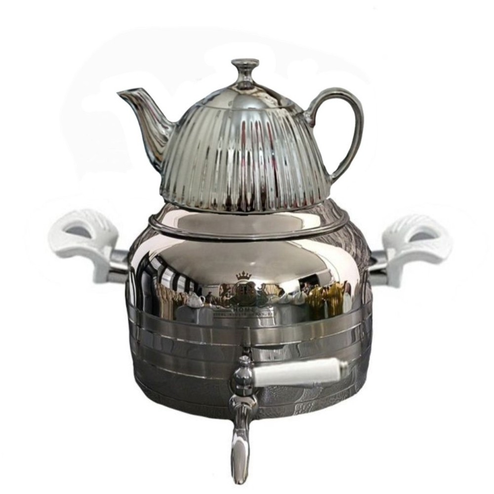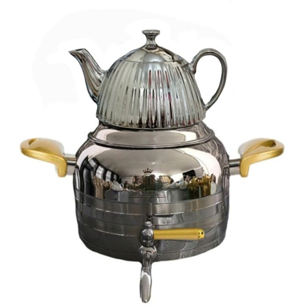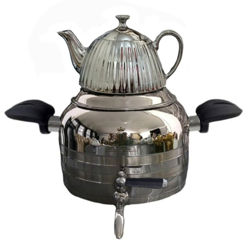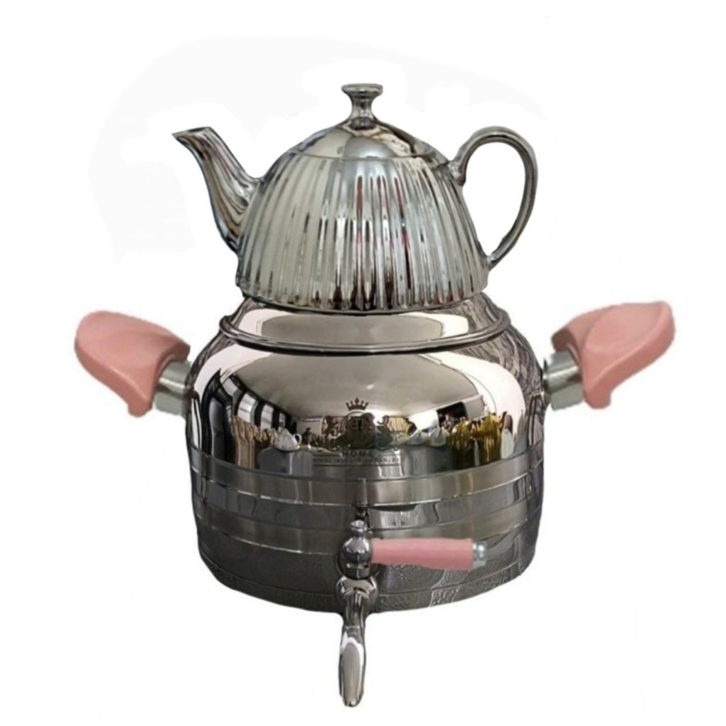 جنس بدنه کتری استیل با ضخامت 0/8mm با تکنولوژی کف چدن سه لایه که از دو لایه استیل و در بین آن یک لایه آلومینیوم ساخته شده است که این مزیت باعث صرفه جوی در مصرف انرژی می شود که در کمترین زمان ممکن آب داخل کتری را به نقطه جوش می رساند تا مدت زیادی حدود یک ساعت آب را داغ نگه می دارد مهجز به درب سوپاپ دار برای مواقعی که کتری بدون قوری استفاده می شود درب سوپاپ دار باعث زود تر داغ شدن آب کتری می شود وهمنگام استفاده با قوری سوپاپ روی درب بخار آب کتری را به زیر قوری هدایت میکند و در حالت دم آوری قوری قرار می گیرد .جنس قوری چینی که به روش PVD رنگ کوره ای شده است که سبب مقاومت بیشتر رنگ در برابر حرارت شده است .همچنین دسته کتری از نوع باکالیت نسوز و در رنگ های سفید .صورتی .طلایی .نقره ای. و مشکی قابل عرضه می باشد.