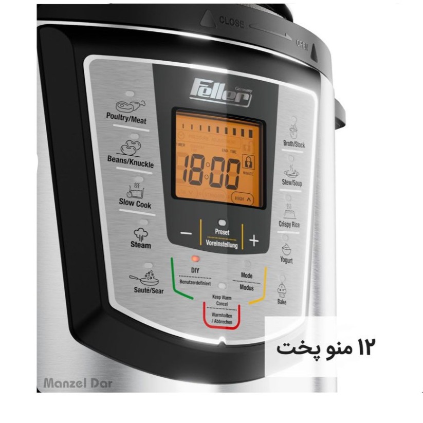 - امکانات: دارای 12 برنامه پخت و پز.9 لایه نگهبانی درب.نچسب با فناوری DUPONT .فشار عملکرد 70 کیلو پاسکال.
