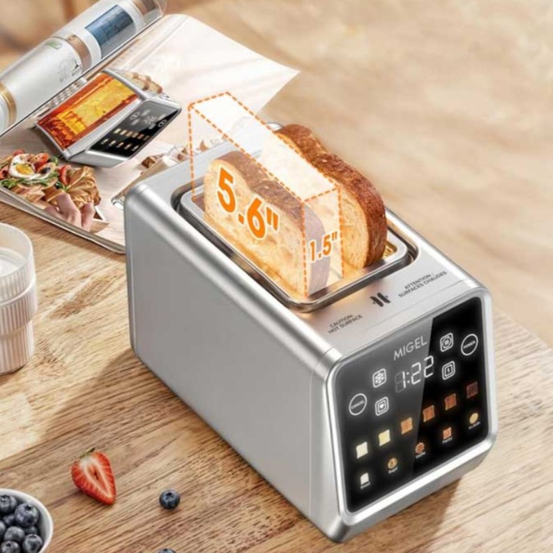 سری جدید توستر نان میگل دارای یک بدنه از جنس استیل ضد زنگ می باشد. این سری دارای یک نمایشگر دیجیتالی لمسی بوده که با داشتن نشانگر های نمایشی می تواند کنترل بهتر و دقیق تری بر روی گرم کردن نان خود داشته باشید.توان مصرفی در نظرگرفته شده برای توستر نان میگل مدل GTO 200 دارای 850 وات می باشد . این توان مصرفی به همراه قابلیت تنظیم برشتگی در 6 حالت مختلف می تواند عملکرد خوبی داشته باشد. انی توستر از نوع دو اسلات بوده که می تواند 5 نوع نان مختلف را نیز تست نماید. این نان ها می تواند شامل نان تست ، نان شیرینی ، مافین انگلیسی ، وافل یا شیرینی باشد.اگر می خواهید یک تکه نان به صورت جداگانه تست نمایید برای این توستر قرار داده شده که می توانید به وسیله دکمه در نظر گرفته شده بر روی کنترل پنل تنظیم کنید.ازدیگر قابلیت های این توستر نان میگل داشتن سیستم یخ زدایی ، سیستم قطع کن خودکار ، سیستم گرم کن مجدد به همراه یک کلید قطع کن می باشد.برای تخلیه خرده نان ها از کف دستگاه یک سینی مخصوص تخلیه خرده نان طراحی شده است. تایمر تعبیه شده نیز زمان پایان گرم کردن نان را نسان خواهد داد.