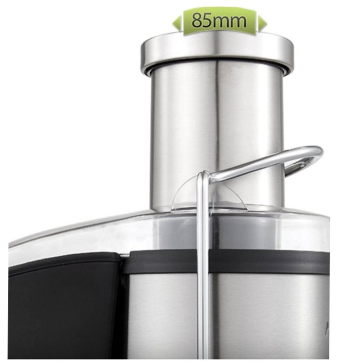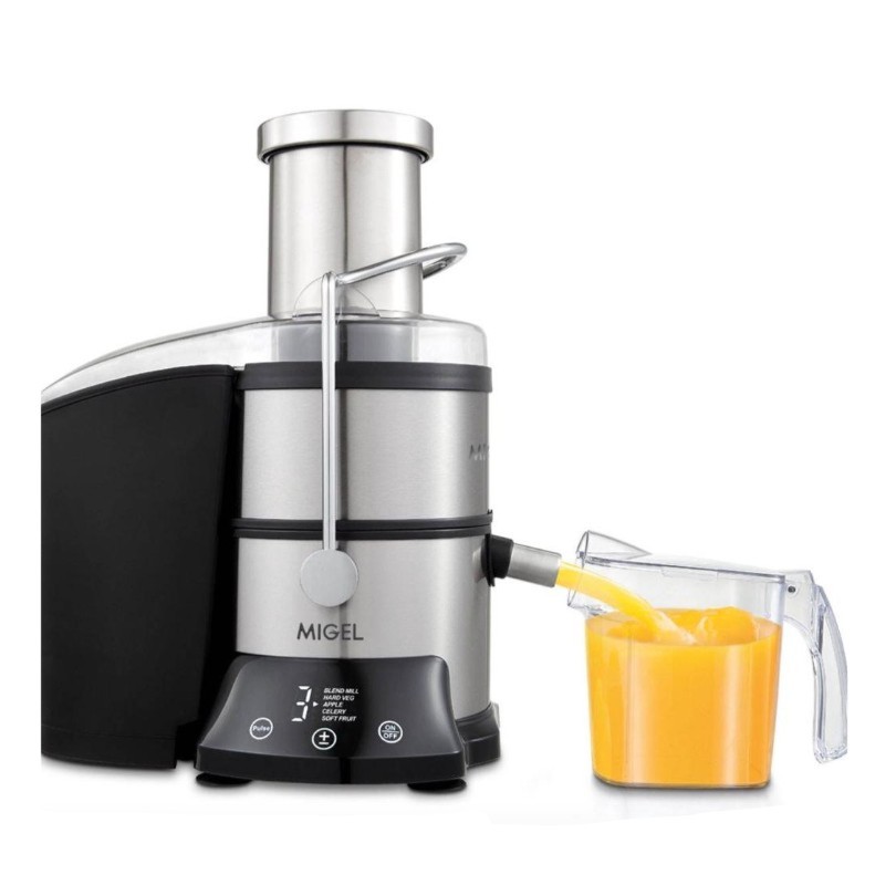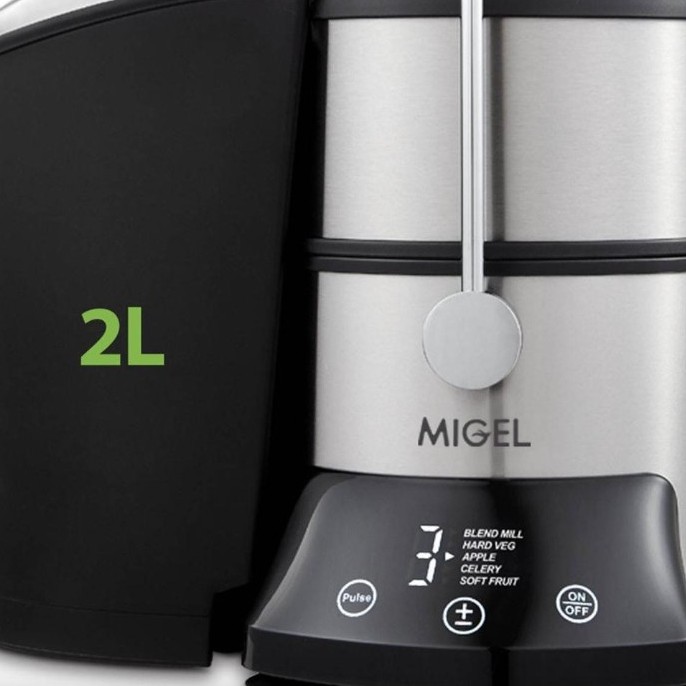 آبمیوهگیری «میگل» (Migel) مدل «GPJ 800» دستگاهی کارآمد برای آبگیری سریع و آسان میوههای مختلف است. این آبمیوهگیری با بدنهای از جنس استیل ضدزنگ دارد که البته بهخوبی طراحی شده و کیفیت نهایی مطلوبی دارد. با استفاده از صفحهنمایش میتوانید تنظیمات مدنظرتان مانند سرعت را اعمال کنید. این مدل قابلیت تنظیم بر روی 4 سطح سرعت را دارد. سرعت کم برای آبگیری میوههای نرم مانند هندوانه، انگور، گوجه فرنگی و خیار و سرعتهای زیادتر برای آبگیری میوههای سفت مانند سیب، هویج و چغندر مناسب است. دهانه ورودی آبمیوهگیری بزرگ است و به قطر 85 میلیمتر طراحی شده که امکان ورود میوههای درسته مثل یک سیب کامل را بدون نیاز به خردکردن آن فراهم کرده است. این آبمیوهگیری میگل مجهز به ظرف تفاله بزرگ با ظرفیت 2 لیتر است که امکان آبگیری پیوسته و بدون وقفه میوه را به شما میدهد. فیلتر و تیغهی GPJ 800 از جنس استیل ضدزنگ تهیه شدهاند و به همین دلیل ارزش خرید بالایی را برای این دستگاه به همراه دارند.