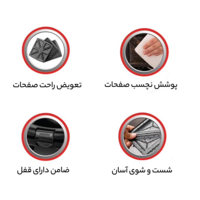 - امکانات: ترموستات ایمنی.نشانگر LED.قابلیت جداسازی و شستشو آسان صفحات.دارای دستگیره سرد.