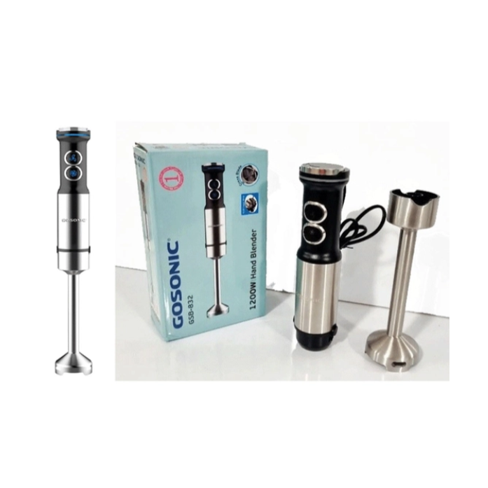 گوشت کوب برقی جدید شرکت گوسونیک مدل GSB-832 با طراحی جدید و با ارتقا فنی موتور نسبت به نسل قبلی معرفی شده است.جنس بدنه این دستگاه قالبا از استیل ضد زنگ ساخته شده که با ترکیب پلاستیک بدنه زیبایی را تشکیل داده است.جنس تیغه در نظر گرفته شده نیز از استیل ضد زنگ با دوام بالا ساخته شده که از نوع 4 پره می باشد.قابلیت جداسازی پایه استیل که توانایی کار در مایعات داغ را نیز داشته به شما کمک خواهد کرد که به سادگی آن را شستشو و نظافت نمایید.موتور پر قدرت تمام مسی گوشت کوب برقی گوسونیک مدل GSB-832 دارای خروجی 1200 وات در حداکثر سرعت بوده که می توانید به وسیله یک کلید ولومی در نظر گرفته شده بر روی محصول آن را تنظیم نمایید.همچنین با قابلیت توربو که دارای یک کلید جداگانه بوده می توانید در کمترین زمان به حداکثر توان مصرفی محصول برسید.به کارگیری چراغ های LED برای این دستگاه بر زیبایی بصیری این محصول پر کاربرد گوسونیک افزوده است.
