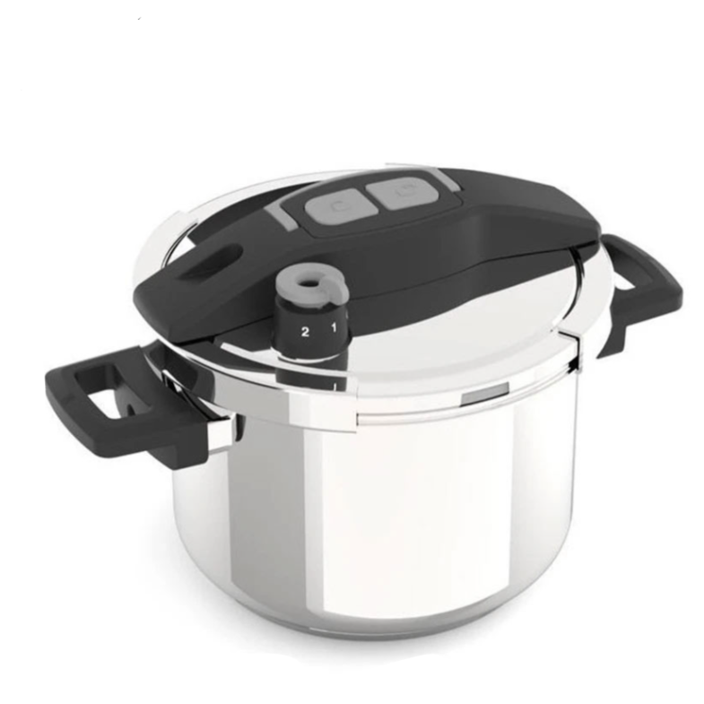 زودپز پارس استیل مدل کلیپسو با ظرفیت ۴ لیتر، انتخابی عالی برای خانوادههای ۴ تا ۶ نفره است. طراحی مدرن، کیفیت ساخت بالا و عملکرد ایمن آن، این زودپز را به گزینهای مطمئن برای آشپزخانههای امروزی تبدیل کرده است.بدنه و درب این زودپز از استیل ضد زنگ با کیفیت بالا ساخته شدهاند که علاوه بر ظاهر براق و زیبا، مقاومت بسیار خوبی در برابر خوردگی و حرارت دارد. دستهها از جنس باکالیت مقاوم در برابر حرارت طراحی شدهاند که هنگام پخت داغ نمیشوند و استفادهای ایمن و راحت را فراهم میکنند.کفی سهلایه باعث توزیع یکنواخت حرارت در تمام سطح قابلمه شده و از سوختن غذا جلوگیری میکند. همچنین با ارتفاع ۱۱ سانتیمتری، فضای کافی برای پخت غذاهای مختلف فراهم شده است.مکانیزم قفل درب دکمهای یکی از ویژگیهای برجسته این زودپز پارس استیل است که باز و بسته کردن زودپز را بسیار ساده و ایمن میسازد. همچنین سیستم رهاسازی بخار ترکیبی (دستی و خودکار) و سوپاپ ایمنی خروج بخار تضمین میکنند که فشار داخل زودپز در همه شرایط بهصورت کنترلشده تخلیه شود.این ویژگیها باعث میشود حتی کاربران تازهکار نیز بدون نگرانی از مشکلات رایج زودپزهای سنتی، به راحتی از آن استفاده کنند.زودپز پارس استیل مدل کلیپسو با گارانتی ۱۸ ماهه از سوی شرکت سازنده ارائه میشود که نشاندهنده اعتماد برند به کیفیت و دوام محصول خود است.
