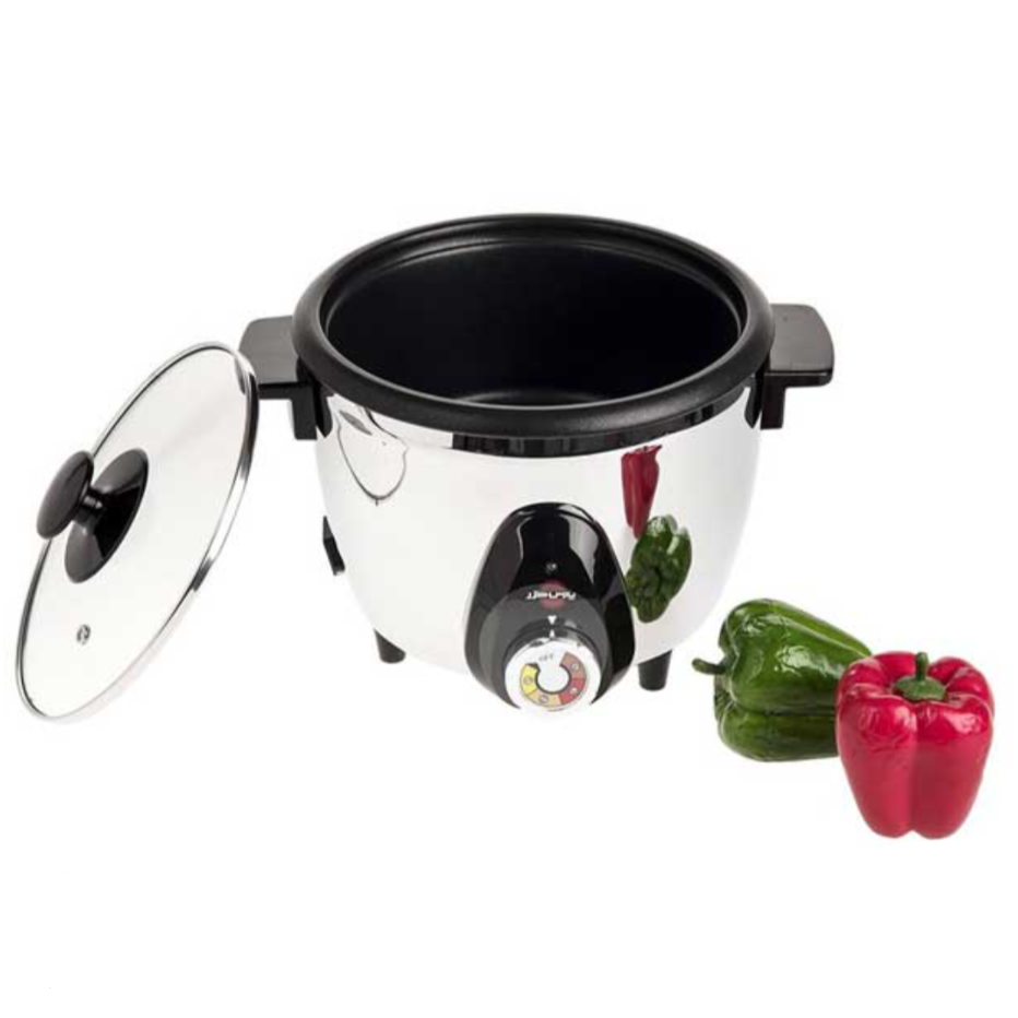 - امکانات: دیگ تفلون.زمان سنج پخت خودکار.شیشه پیرکس با سوپاپ جهت خروج بخار.