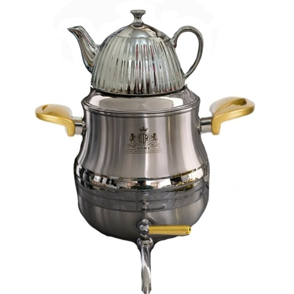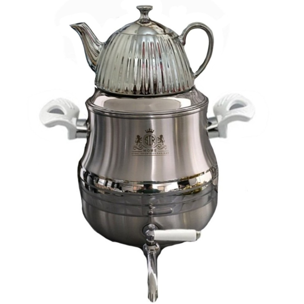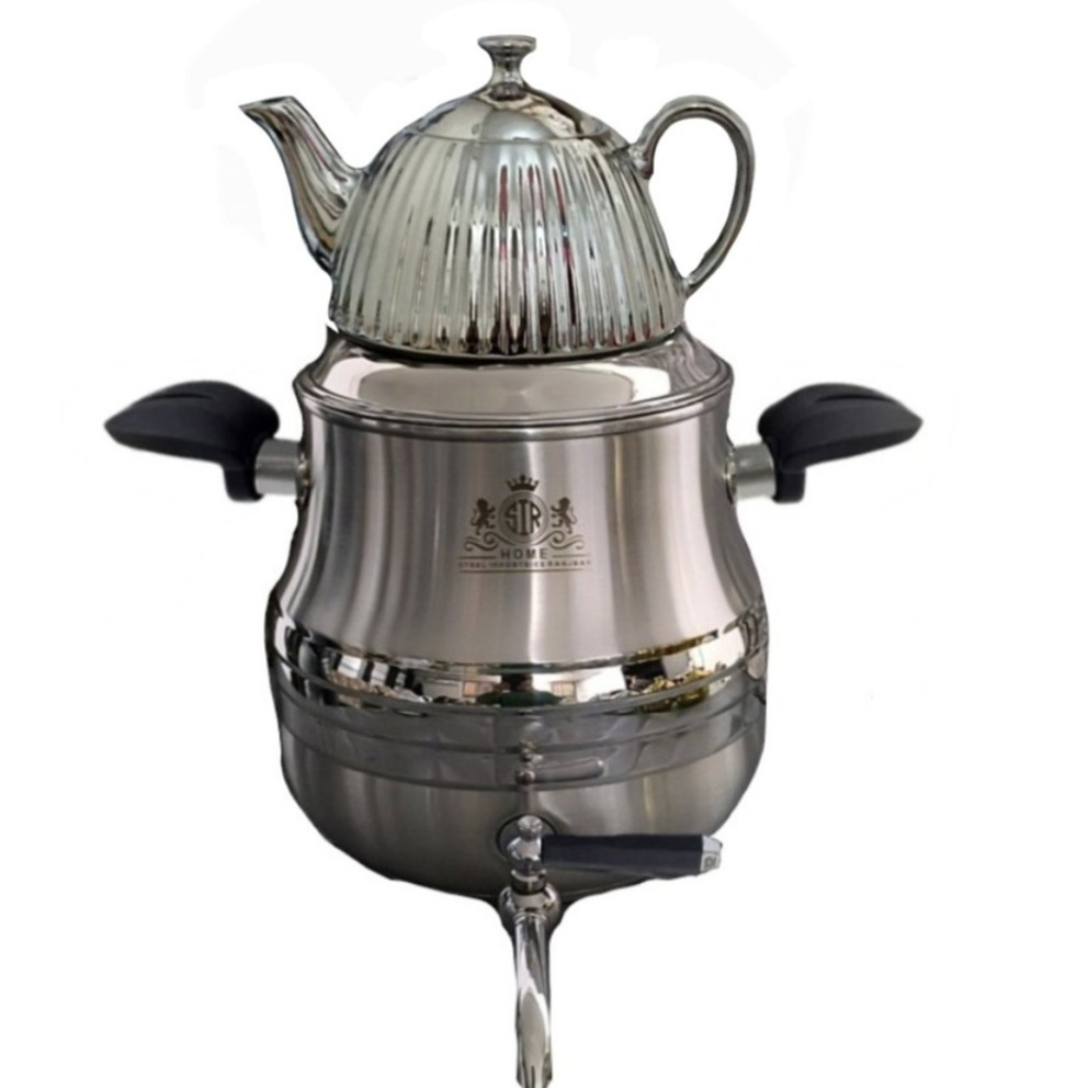 جنس بدنه کتری استیل با ضخامت 0/8mm با تکنولوژی کف چدن سه لایه که از دو لایه استیل و در بین آن یک لایه آلومینیوم ساخته شده است که این مزیت باعث صرفه جوی در مصرف انرژی می شود که در کمترین زمان ممکن آب داخل کتری را به نقطه جوش می رساند تا مدت زیادی حدود یک ساعت آب را داغ نگه می دارد مهجز به درب سوپاپ دار برای مواقعی که کتری بدون قوری استفاده می شود درب سوپاپ دار باعث زود تر داغ شدن آب کتری می شود وهنگام استفاده با قوری سوپاپ روی درب بخار آب کتری را به زیر قوری هدایت میکند و در حالت دم آوری قوری قرار می گیرد همچنین دسته کتری از نوع باکالیت نسوز و در رنگ های سفید .صورتی .طلایی .نقره ای. و مشکی قابل عرضه می باشد.جنس قوری چینی که به روش PVD رنگ کوره ای شده است که سبب مقاومت بیشتر رنگ در برابر حرارت شده است.