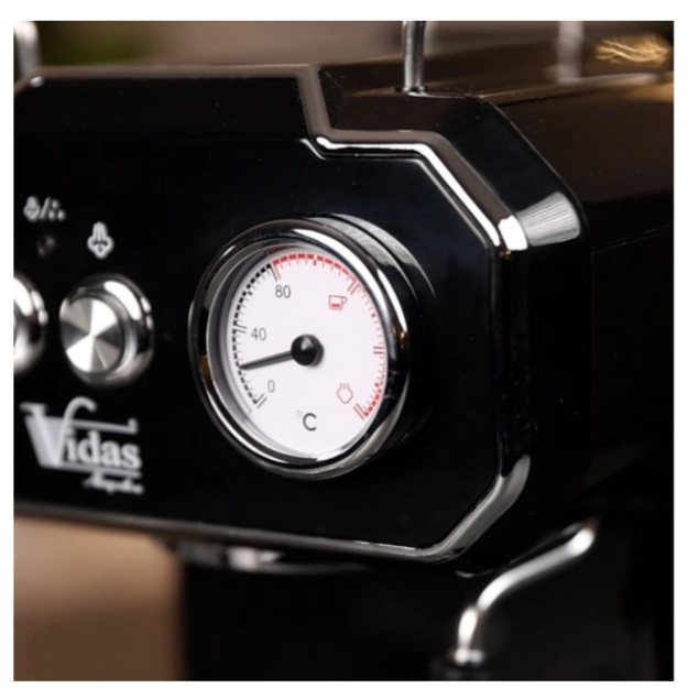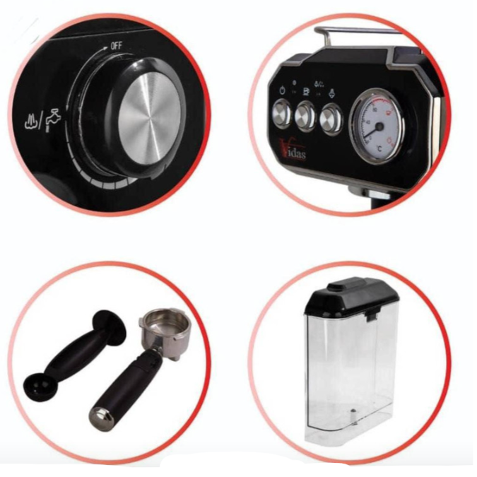 برند ویداس دارای یکی از کامل ترین دسته بندی محصولات نوشیدنی ساز می باشد. این شرکت با بهره گیری از تکنولوژی روز ، یکی از بهترین اسپرسو ساز ها در رده قیمتی خود را به بازار عرضه نموده است. اسپرسوساز ویداس مدل 2348 -VIR با داشتن کنترل پنل مکانیکی از طراحی کلاسیک اما زیبا بهره می برد.مخزن آب دستگاه با قابلیت جداسازی از بدنه اصلی دارای 1.5 لیتر ظرفیت گنجایش آب می باشد. این مقدار آب برای تهیه 10 تا 12 فنجان می تواند مورد استفاده قرار بگیرد.توان مصرفی در نظر گرفته شده برای این دستگاه به 1800 وات می رسد. این توان مصرفی قادر خواهد بوده تا به همراه پمپ قدرتمند قرار داده شده ، فشار بخار تا 20 بار برای تولید کف شیر برای کاربر فراهم نماید.نشانگر فشار بخار ، سینی چکه گیر ، هد گروپ و فیلتر از جنس استیل ضد زنگ از دیگر خصوصیات ظاهری این محصول می باشد.از قابلیت های اصلی این محصول می توان به تولید اسپرسو ، کاپوچینو و قهوه لاته اشاره کرد که با توجه به فشار بخار و توان مصرفی مناسب می توانید از قهوه ، عصاره گیری بهتری داشته باشد.سیستم های حفاظتی مانند جلوگیری از افزایش بیش از حد دما و فشار در دستگاه برای افزایش طول عمر مفید محصول به کار گرفته شده است.