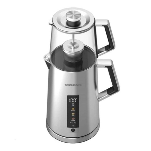 یکی از جدیدترین محصولات شرکت گوسونیک در دسته بندی نوشیدنی ساز ، چای ساز GST-781 می باشد. این دستگاه با داشتن یک کتری از جنس استیل ضد زنگ به همراه قوری شیشه ای تشکیل شده است.ظرفیت کتری این چای ساز دارای گنجایش 1.7 لیتر می باشد. این کتری استیل ضد زنگ از نوع استیل 304 با قطر 0.5 میلی متر بوده که یکی از بهترین استیل های استفاده شده در کتری برقی می باشد. قوری این دستگاه نیز از جنس شیشه ای با ظرفیت 1 لیتر به همراه یک فیلتر تفاله گیر از جنس استیل ضد زنگ می باشد.توان مصرفی در نظر گرفته شده برای چای ساز گوسونیک مدل GST-781 دارای 2200 وات می باشد. این توان مصرفی می تواند به سرعت آب را بجوش آورد.کنترل پنل این دستگاه از نوع دیجیتالی لمسی بوده که می توانید دمای مورد نظر خود را برای تهیه انواع نوشیدنی مانند قهوه ، چای ، دم نوش تنظیم کنید.سیستم های ایمنی و نظارتی این چای ساز شامل ، سیستم قطع کن خودکار ، سیستم گرم نگهدارنده برای دم کشیدن چای ، سیستم قطع کن در صورت کتری خشک و سیستم محافظتی در صورت افزایش بیش از حد دما می باشد.